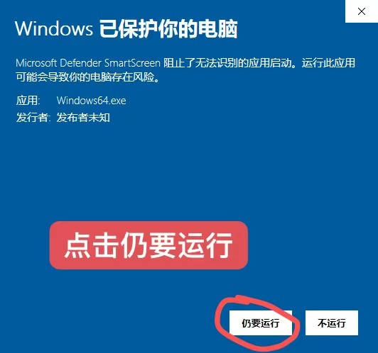 下载完成后,点击打开,如果提示 蓝色内容,请点击更多信息,然后在点击【仍要运行】