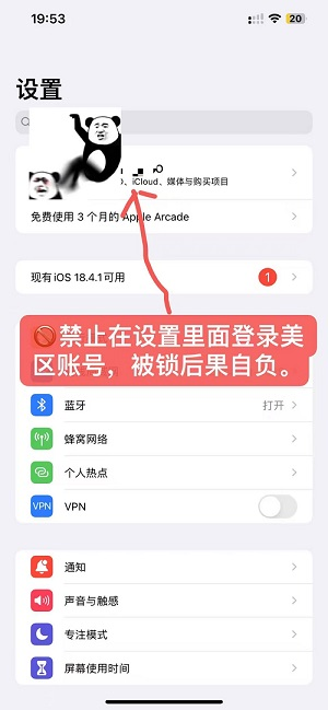 注意2:【美区账号】【只能在App Store登录使用】,【禁止】在【系统设置】里面登录。